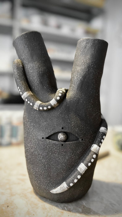 Soyut olanla tasvir edilenin arasında, mistik, psikolojik ve okült olguların çamur ve renklerle buluştuğu bir alan yaratıyorum. Seramik ve resim, sadece birer malzeme değil, bu dünyalar arasındaki diyalogda benim dilim oluyor.